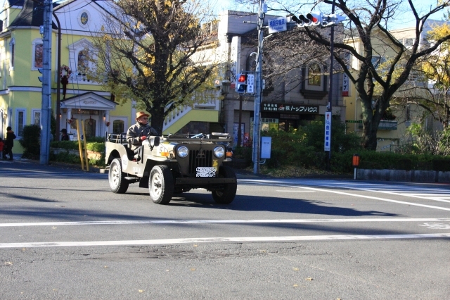 大学通りの古車と紅葉 |